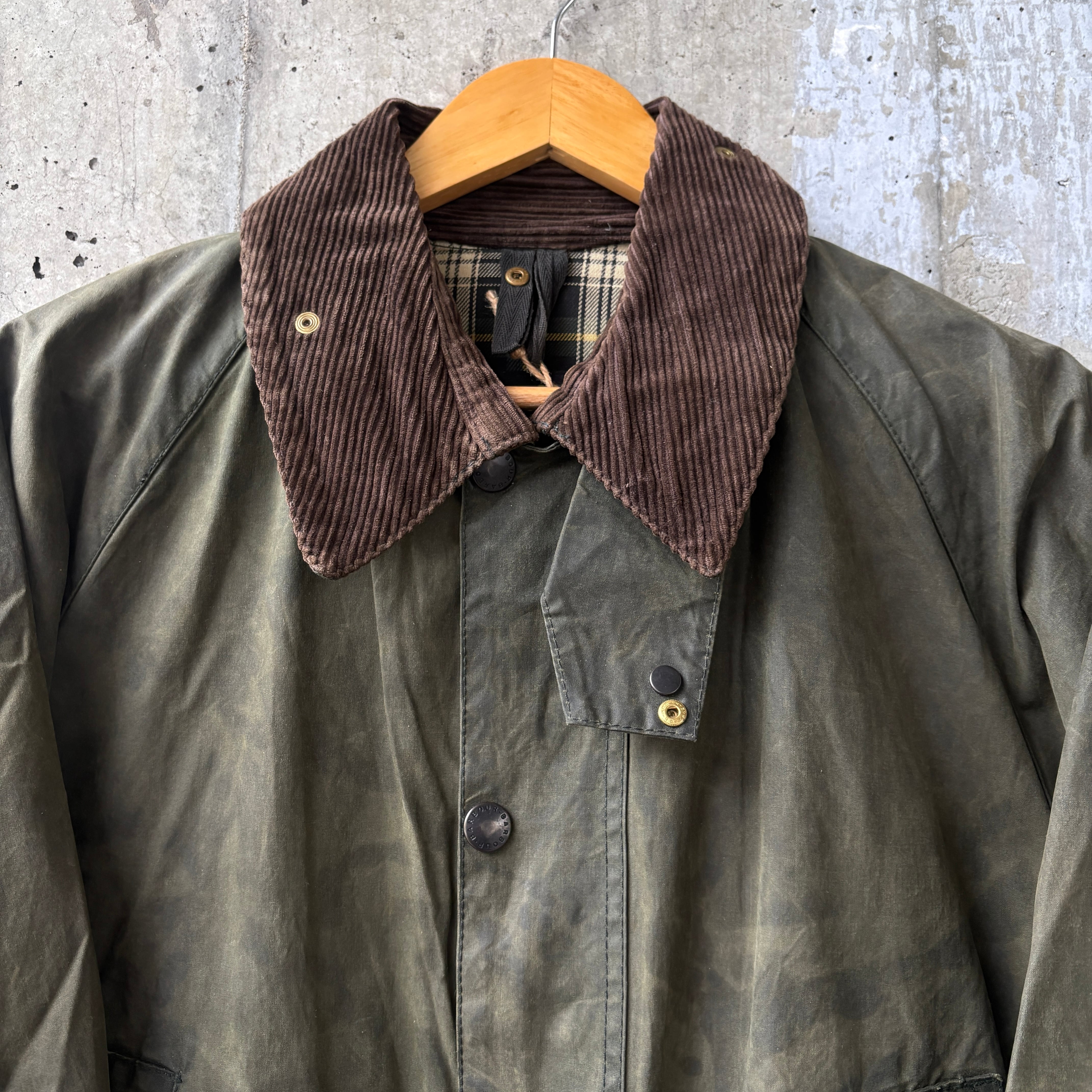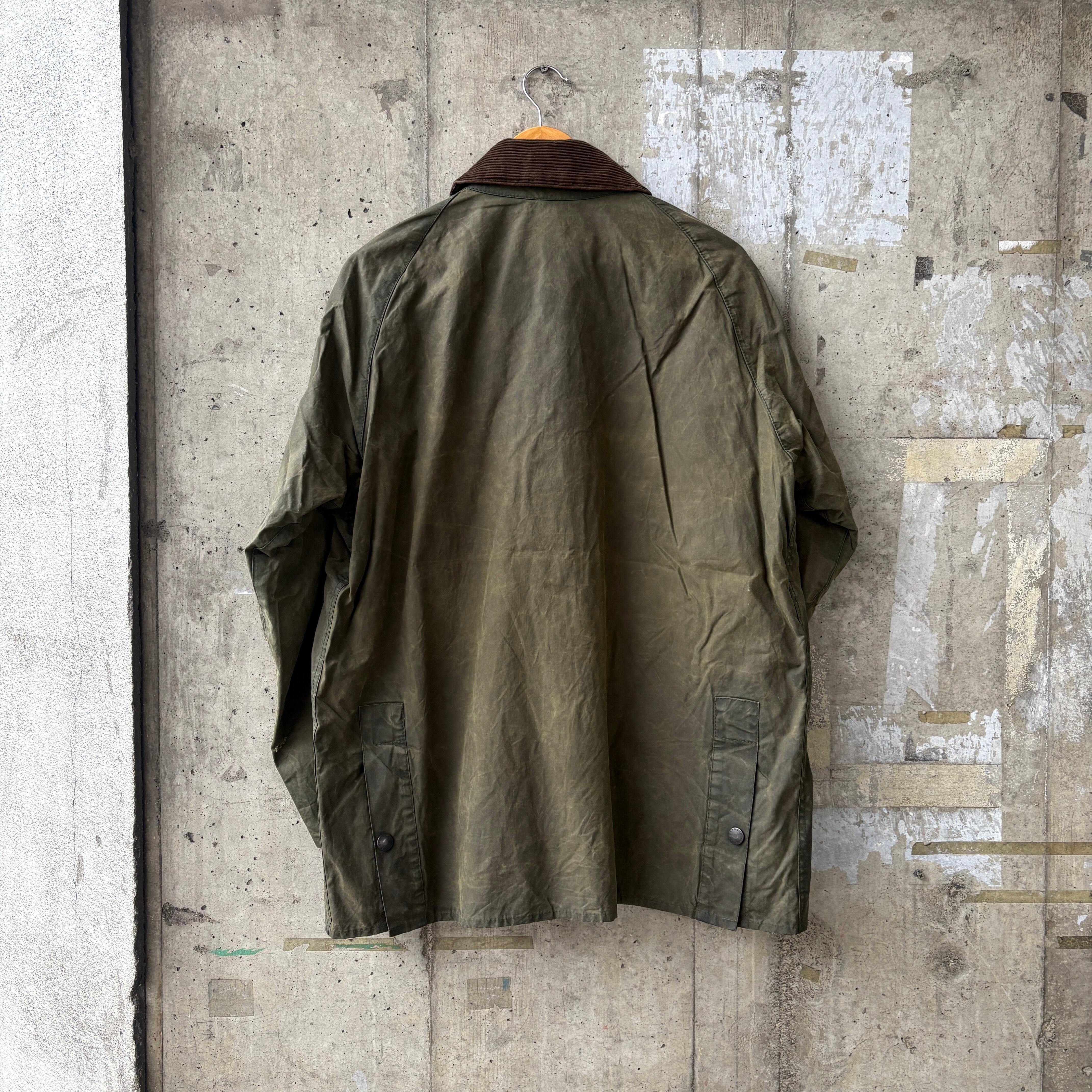 イギリスの老舗ブランド"Barbour"のオイルジャケット。モデルはBEDALEでもともとは乗馬用用に作られたオイルジャケットで、側面にサイドベンツがある点が特徴です。