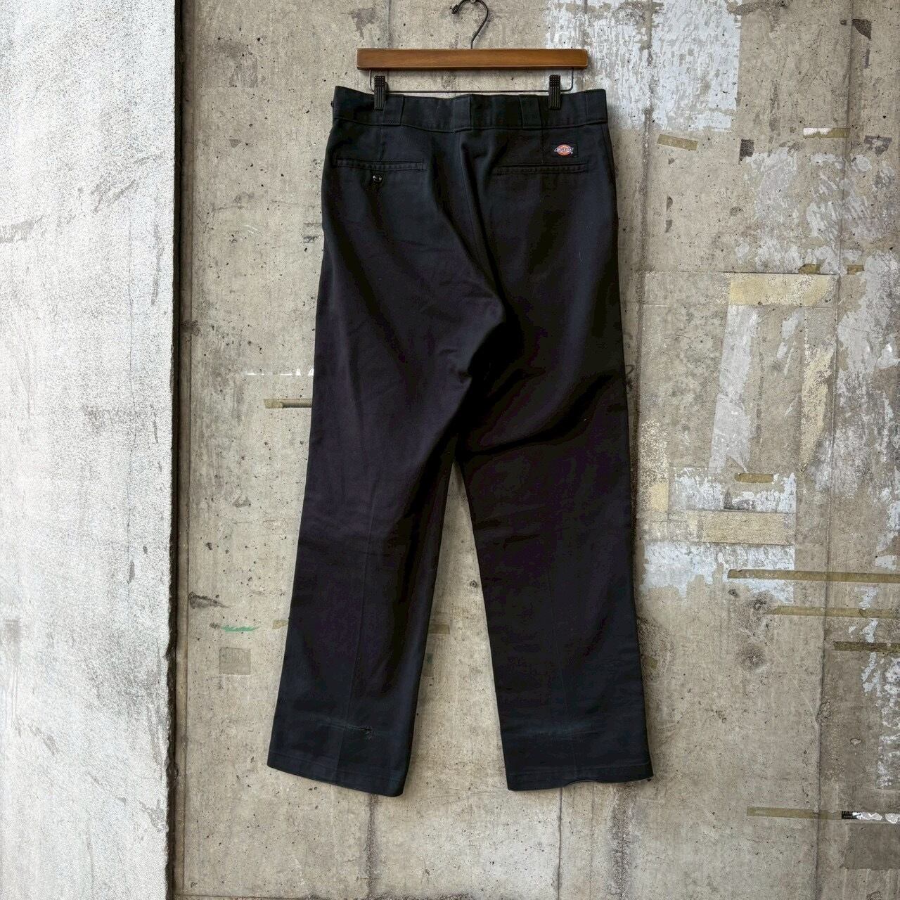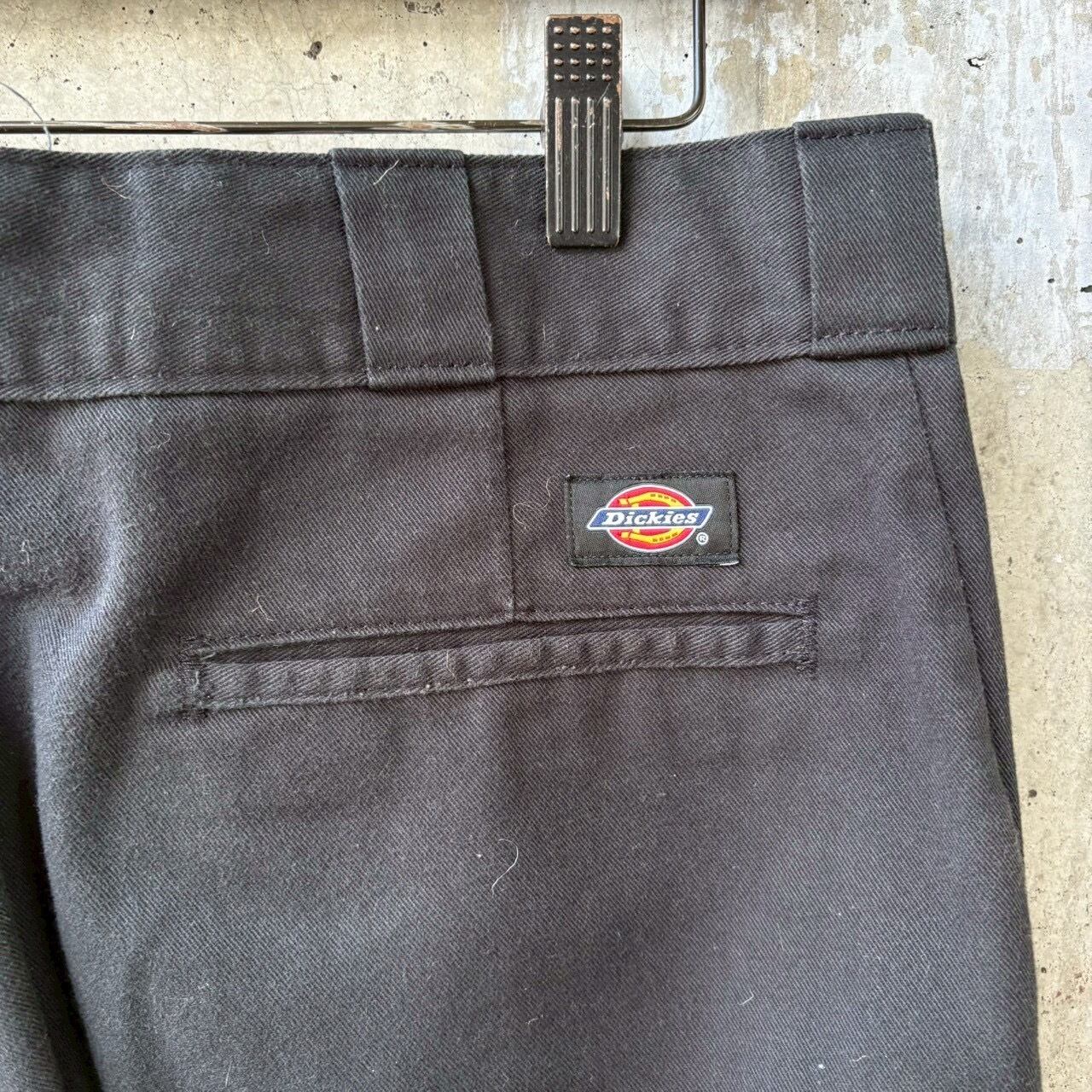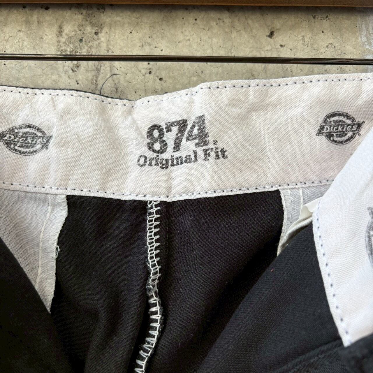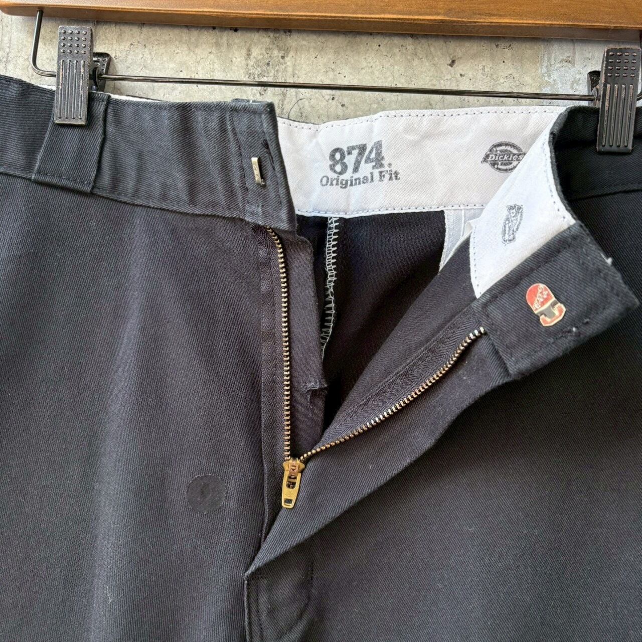 Dickiesの定番である874。キレイなストレートがどんなコーデにもフィットします。1922年にアメリカのテキサスで農業や工場用のワークウェアブランドとして誕生したDickies。当初は働く人の服としてのイメージしかありませんでしたが、その丈夫さと実用的な点が評価さるようになりまた。90年代になるとストリートファッションアイテムとして人気となり、現在のファッションブランドとしての地位を獲得しました。写真の通り裾に小さな穴がありますが、古着らしい使用感を楽しんでいただけると思います。