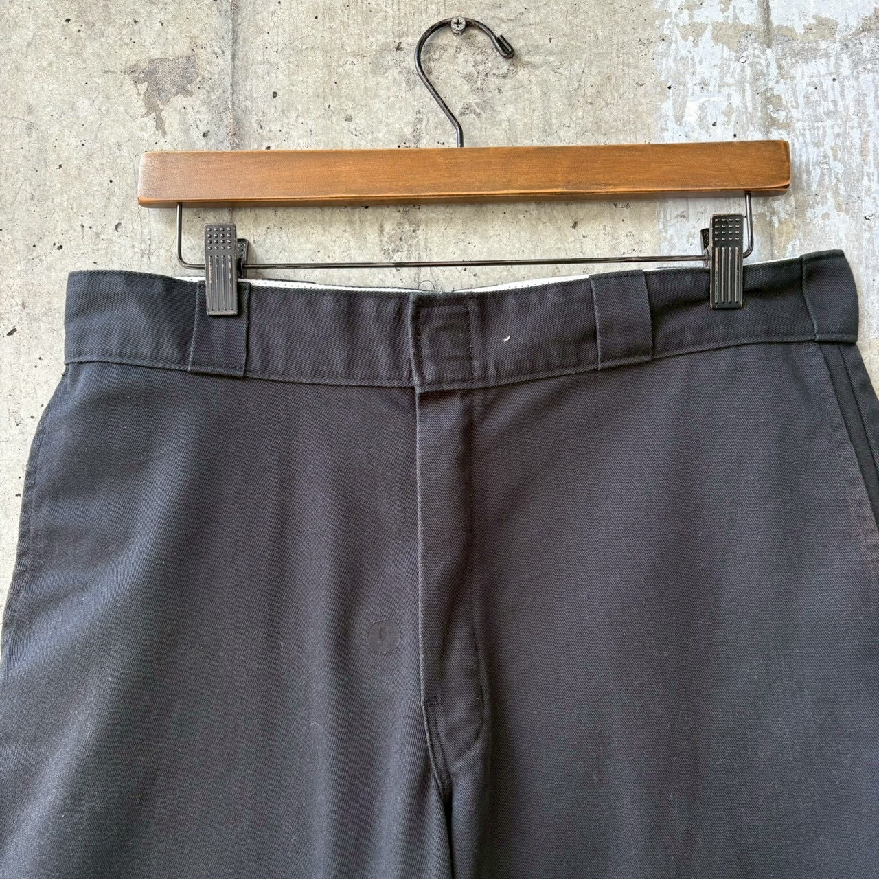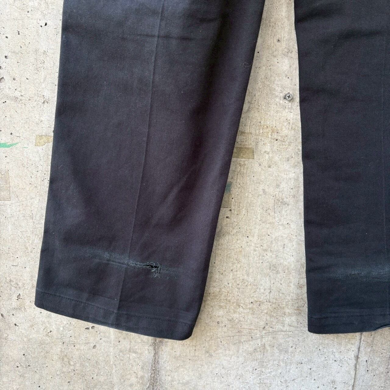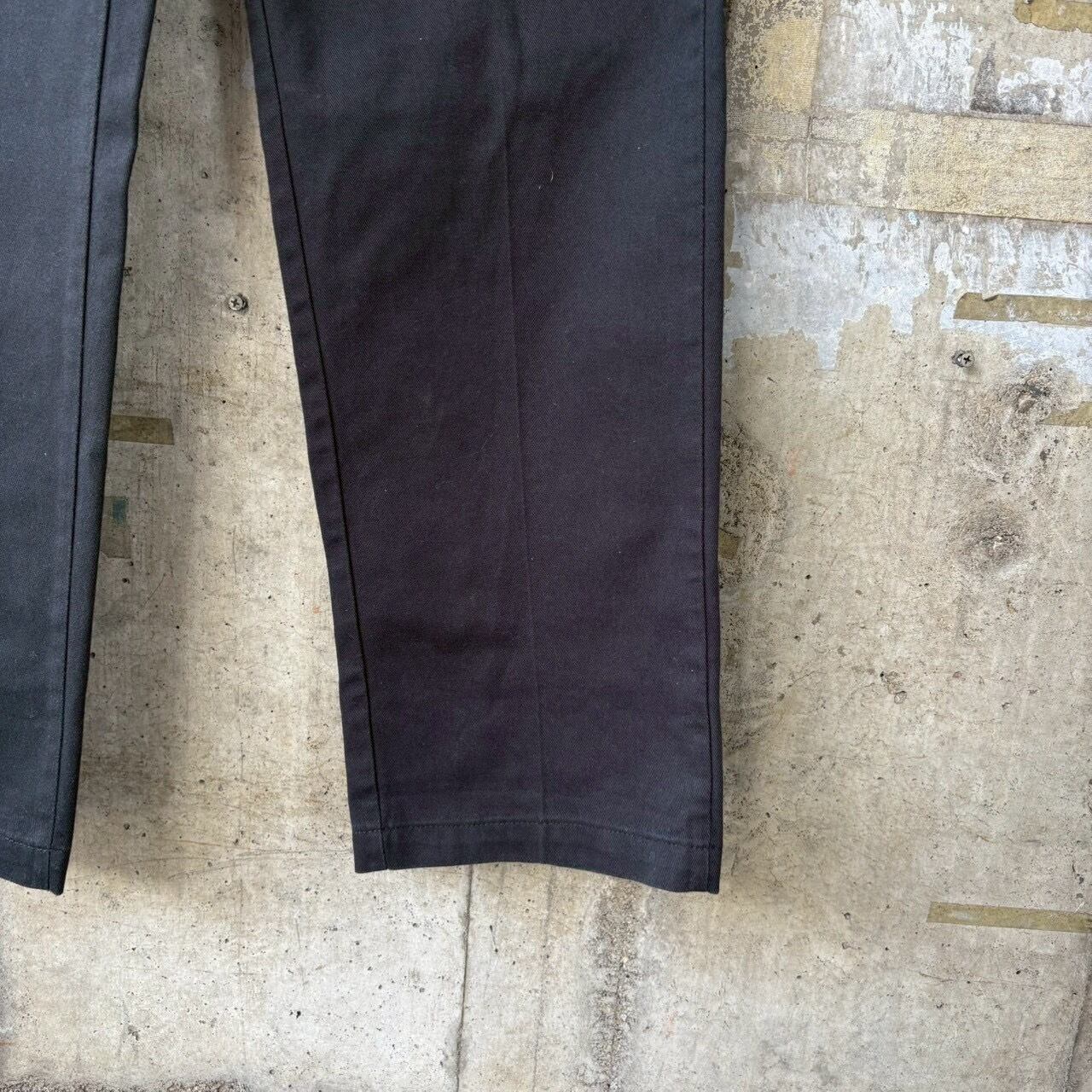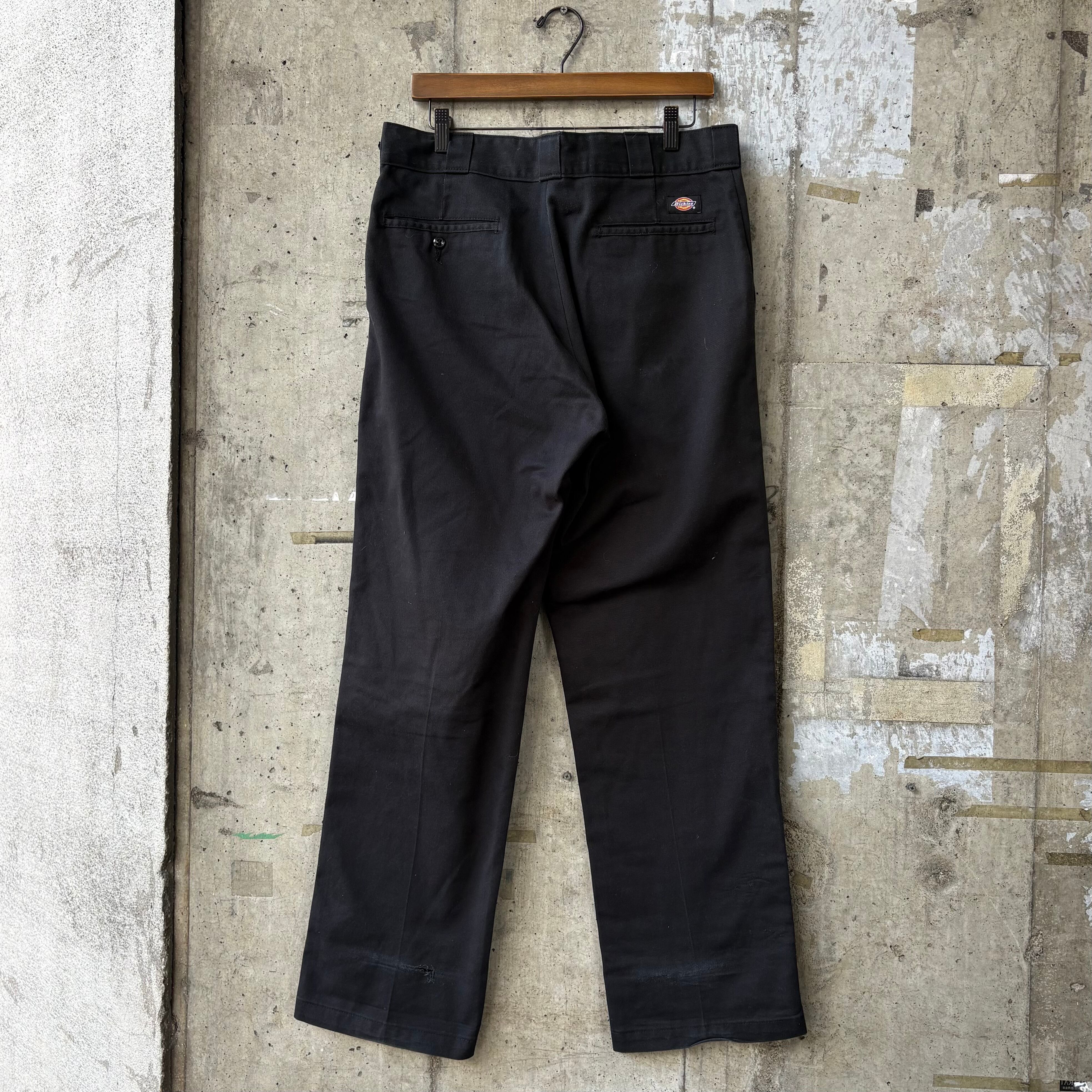 Dickiesの定番である874。キレイなストレートがどんなコーデにもフィットします。1922年にアメリカのテキサスで農業や工場用のワークウェアブランドとして誕生したDickies。当初は働く人の服としてのイメージしかありませんでしたが、その丈夫さと実用的な点が評価さるようになりまた。90年代になるとストリートファッションアイテムとして人気となり、現在のファッションブランドとしての地位を獲得しました。写真の通り裾に小さな穴がありますが、古着らしい使用感を楽しんでいただけると思います。