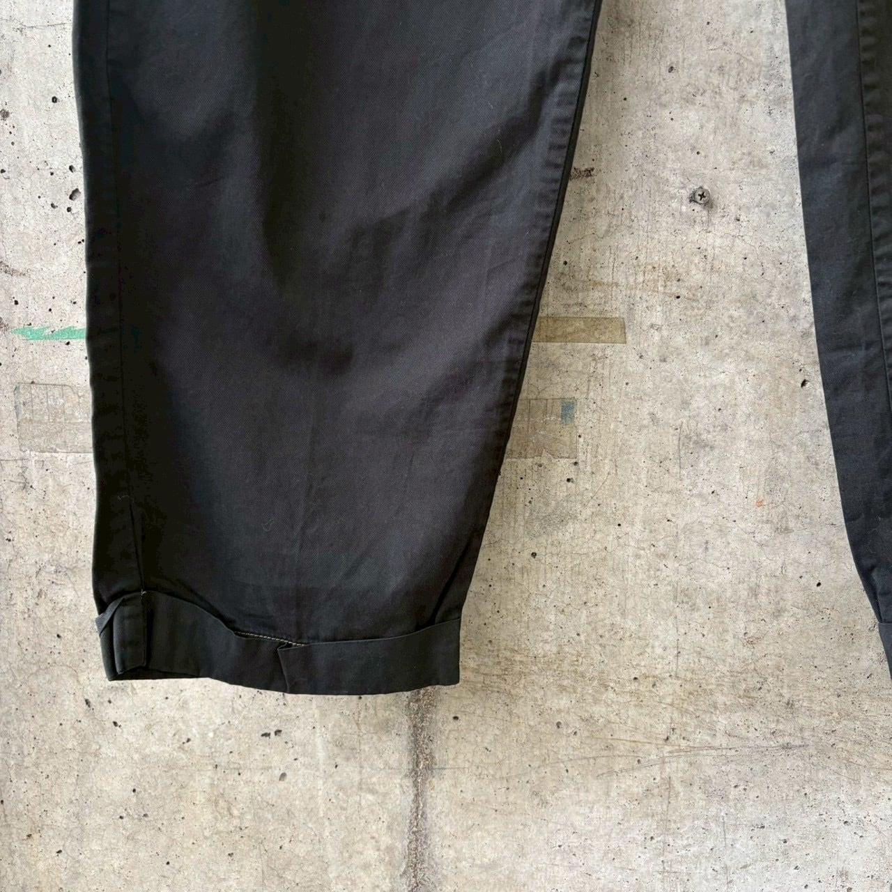 「ハモンド」とは太もも周りにゆとりがあり裾にかけて細くなるストレートパンツのことで、POLO独自のモデルの名前です。他にももう少し細め「アンドリュー」などがあり、人名のような名前のモデルがあります。ローファーやジャケットなどのフォーマルなアイテムと合わせると、堅くなりすぎないコーデにも仕上げることができます。ボタンがひとつなくっなっているのでご了承ください。