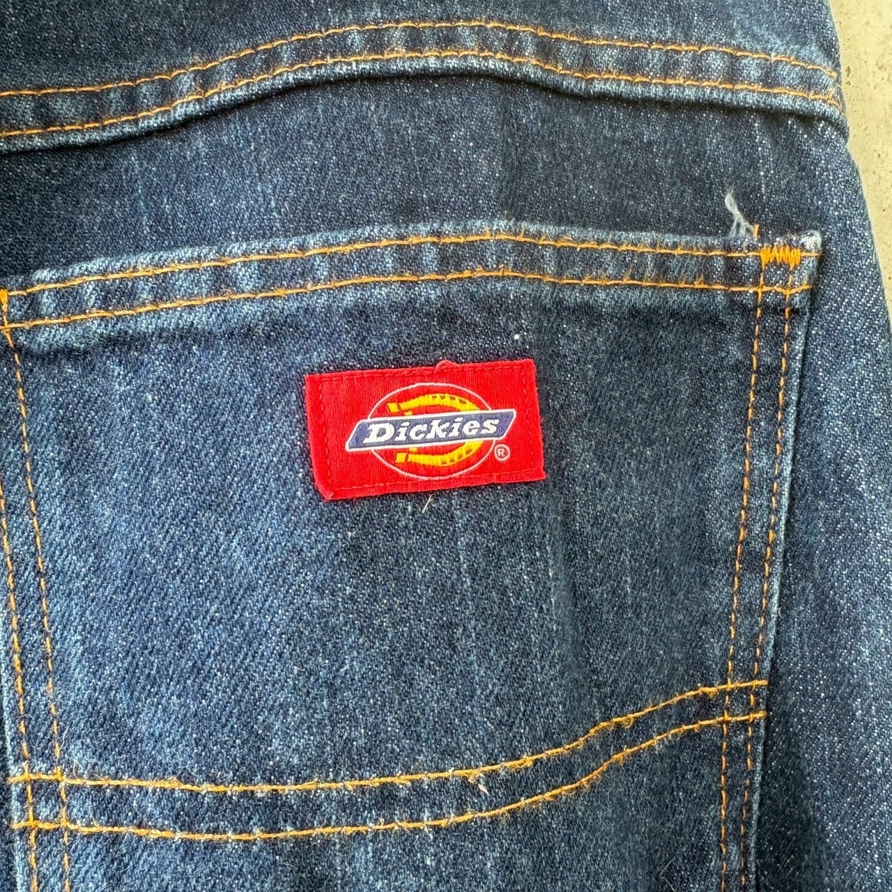 1922年に農業や工業用のワークウェアブランドとして誕生したDickesのペインターデニムパンツ。ペインターデニムとは建設現場などで働くペインター(塗装職人)のために作られたデニムのこと。普通のデニムよりもゆったりとした作りになっており、大きなポケットが特徴です。オレンジのステッチや赤のブランドロゴ、ロゴ入りのメタルボタンがアクセントとになっており、普段使いしやすい一着です。