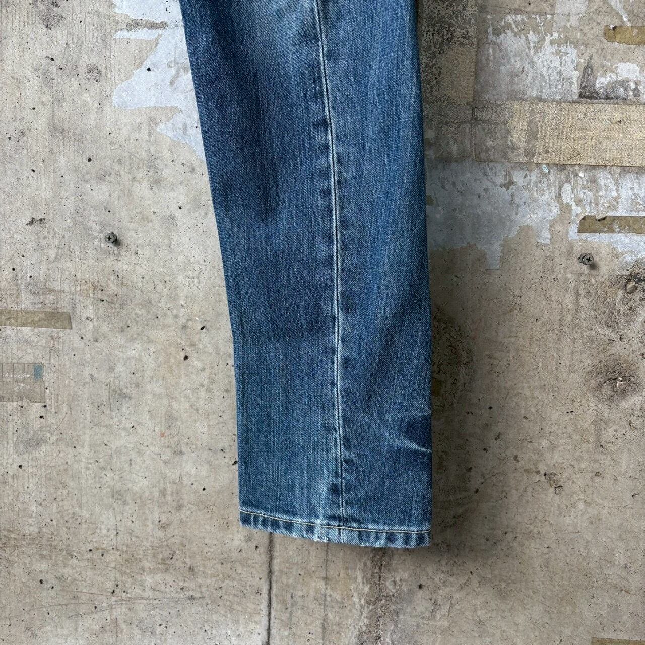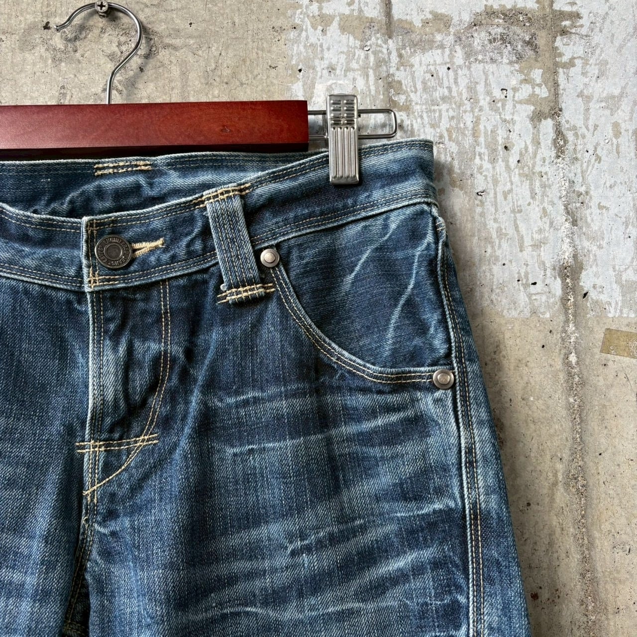 levi'sの1999年に登場した世界初の3D立体裁断デニム。人間工学に基づいたサイドシームが大きく内側にねじれたデザインが特徴。かなりスキニーが効いたアイテムなので、サイズの合う方には、インパクトを残す強武器です。