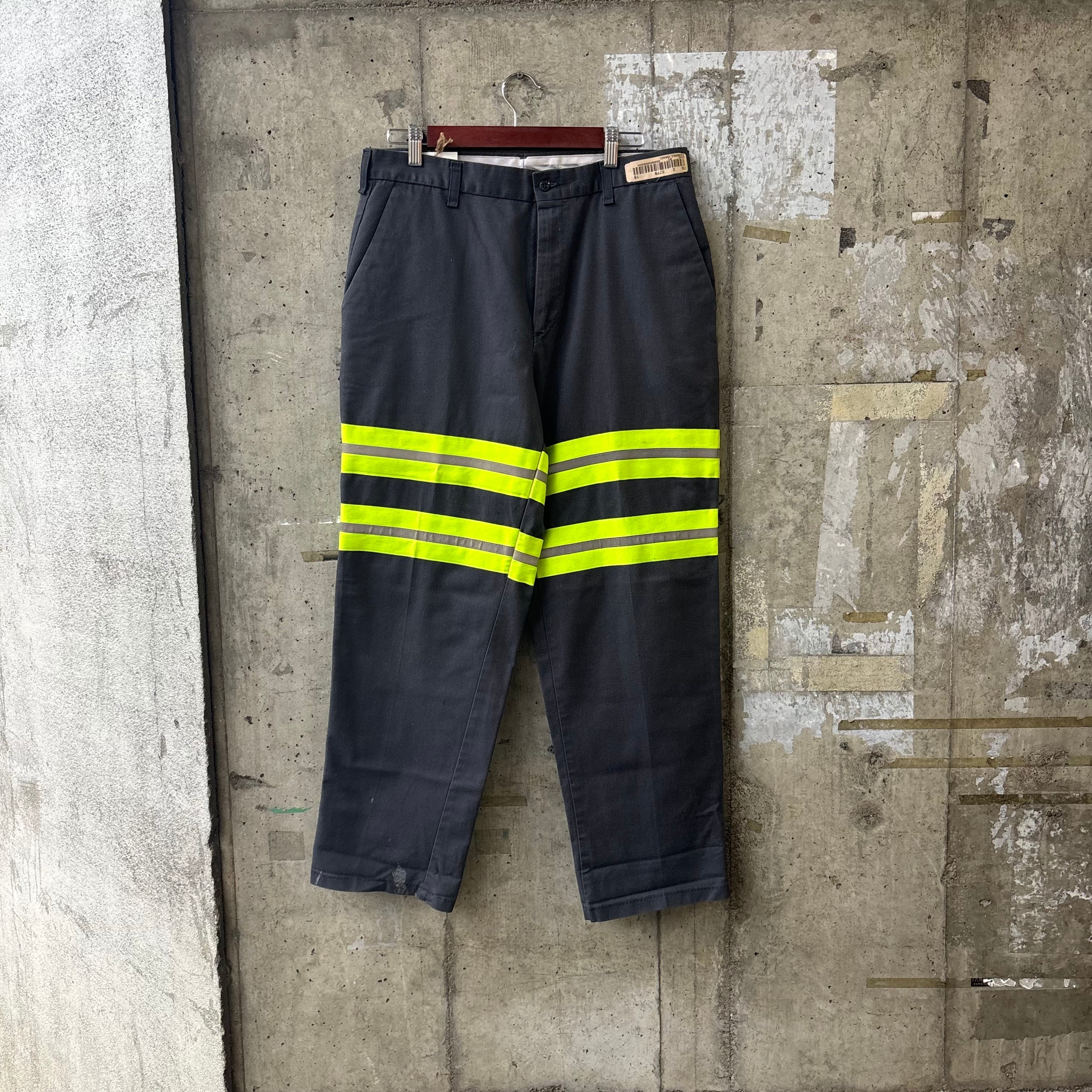 アメリカのワークウェアブランドCINTASのリフレクター付きワークパンツ。タフな見た目に反して生地は柔らかい、ゆったりとしたワイドなルーズシルエット。本来制服としてタイト目に履くことが多いワークパンツを緩く履くのがPOINT。トラッドなアイテムと組み合わせると、リフレクターをアクセントに落とし込めます。