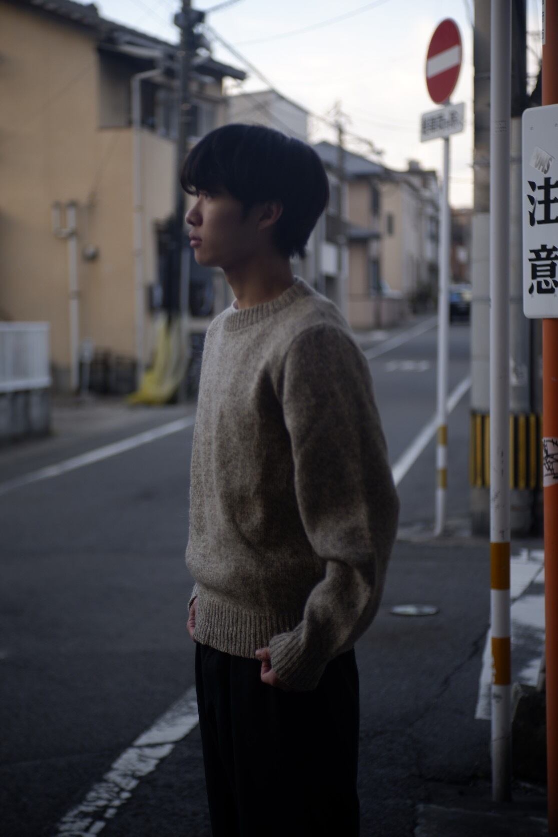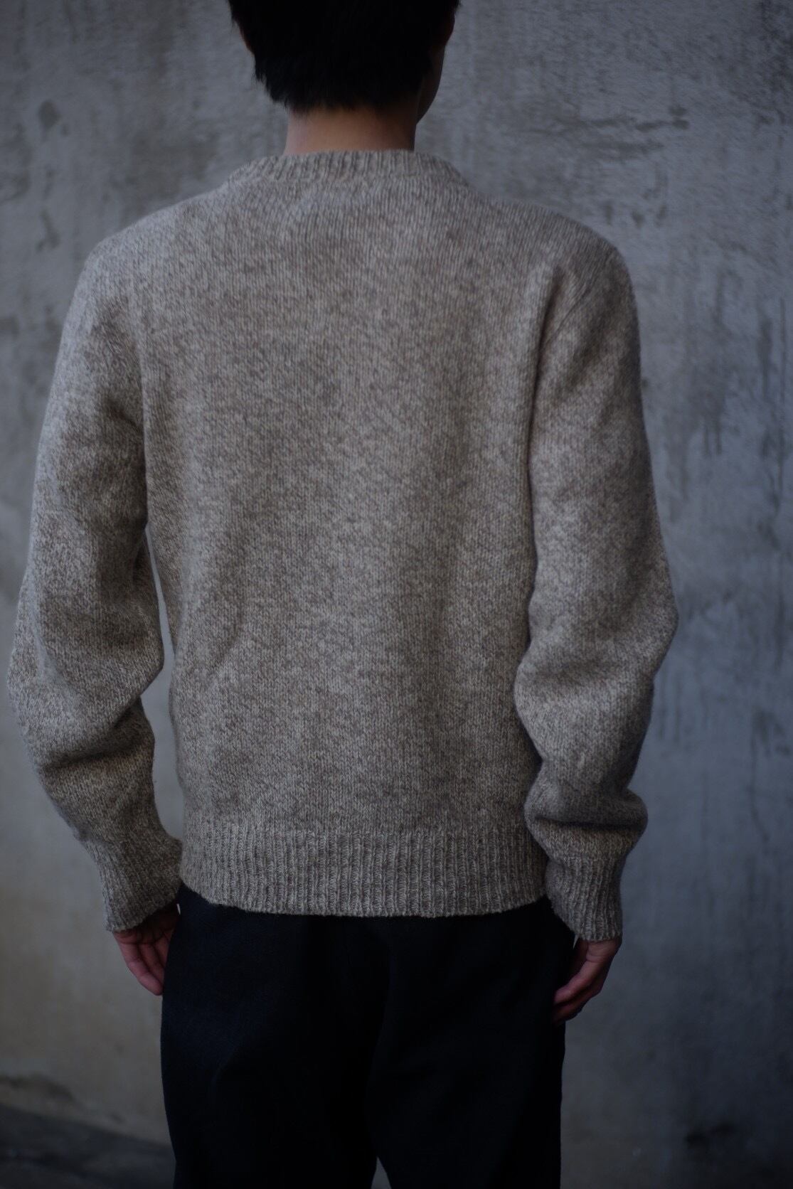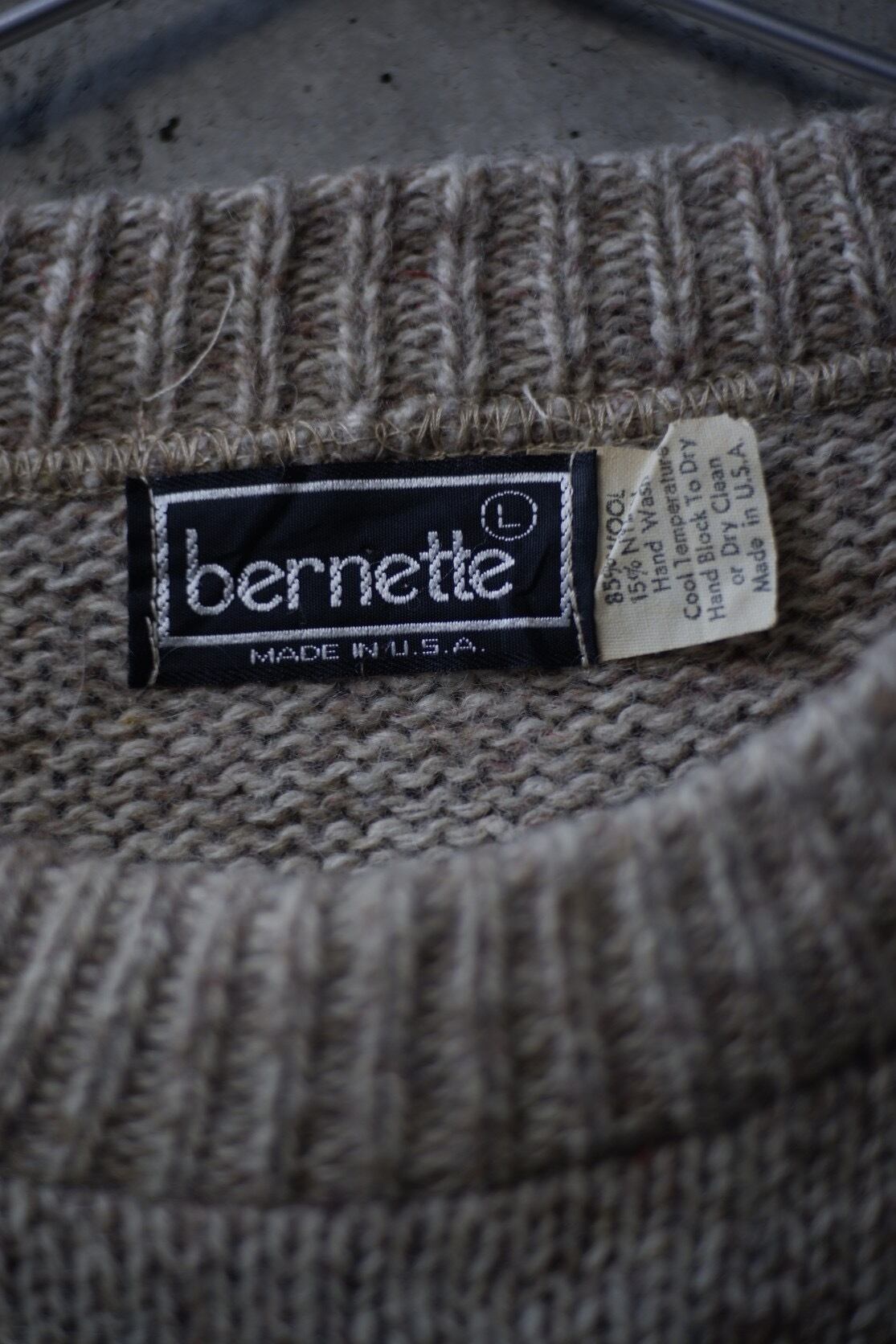USA製bernetteのウールニット。ウールニットといっても、詳細には15%ナイロンが混ざっています。ナイロン混の利点として、ウールの摩耗に弱いという弱点を補い、より光沢感を出させる特徴があります。とてもシンプルですが、重宝する一品です。