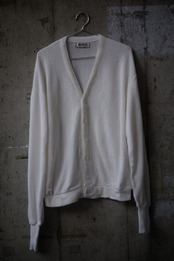 1916年にスイミングウェアのブランドとしてアメリカ・ポートランドにて設立された"Jantzen"のアクリルニットカーディガン。色合いは白色と素朴ですが、どこか気品を感じさせます。メンズ・レディースを問わない大人な一品。